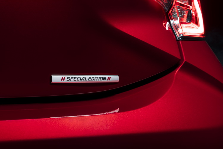 ![]() 這部特仕車與標準車型相比的特別之處在於一身專屬的「Supersonic Red」鮮紅車色,並且搭配上專屬的18吋黑色鋁圈來營造視覺對比,外觀上一些原本會出現鍍鉻的地方也改為黑色飾板。同樣以黑色塗裝處理的專屬車身套件包括側裙、前下擾流與車頂擾流尾翼。