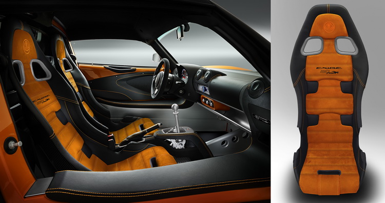 懷舊之前持續蔓延至車內,車主可選擇多種色調的Alcantara類麂皮革內飾,座椅也仿當年Exige Series 1的作法加入鑲飾縫線;椅背上有電繡紀念Logo,副手座前方也有鑲上一塊有紀念Logo的銘牌。選配部分則提供支援藍芽功能的DAB數位廣播、定速巡航、超輕量鍛造鋁圈、Alcantara類麂皮跑車方向盤、碳纖維門檻飾板、輕量鋰電池與鈦合金排氣管。