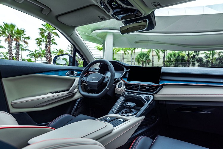 儘管與自家兄弟姊妹有著很多地方相似處,Lynk & Co 06卻有著更加年輕的風範和院動感,這主要是因為它的車身比例以及車頭、車頂和鋁圈有著橘色塗裝來點綴,注入年輕人最喜愛的特殊感覺。車內同樣看的到橘色的飾條來與車外相呼應,設計概念走的是時下最流行的大屏幕,並且精簡車內按鍵達到乾淨且俐落。高科技配備有環景攝像頭、車後方雷達偵測、自動巡航駕駛系統以及全景天窗等。