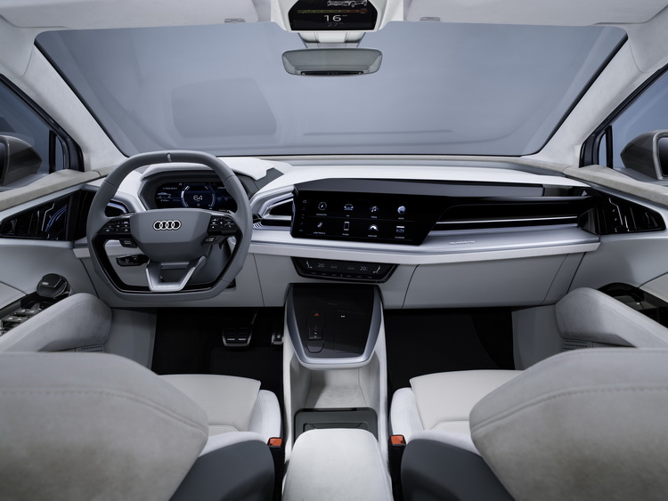 電池容量:82kW 續航里程:450km 底盤:MEB 驅動方式:4WD 系統功率輸出:225kW 馬達:後:150kW、310Nm/前:75kW、150Nm 急速充電:30分鐘充飽80%(125kW充電) 動力系統上與Q4 e-tron概念車相同沒有改變,車身尺碼則是車長多出1cm、車高也低了1cm。所使用的MEB底盤是VW集團的電動車模組化底盤,其特色是電池模組全部配置於車室地板之下,且馬達的數量與位置都有很高的配置彈性,像Q4 Sportback e-tron概念車是前後軸都有配置馬達的電動Quattro系統,而同樣採用MEB底盤的VW ID.3則只在後軸配置馬達。