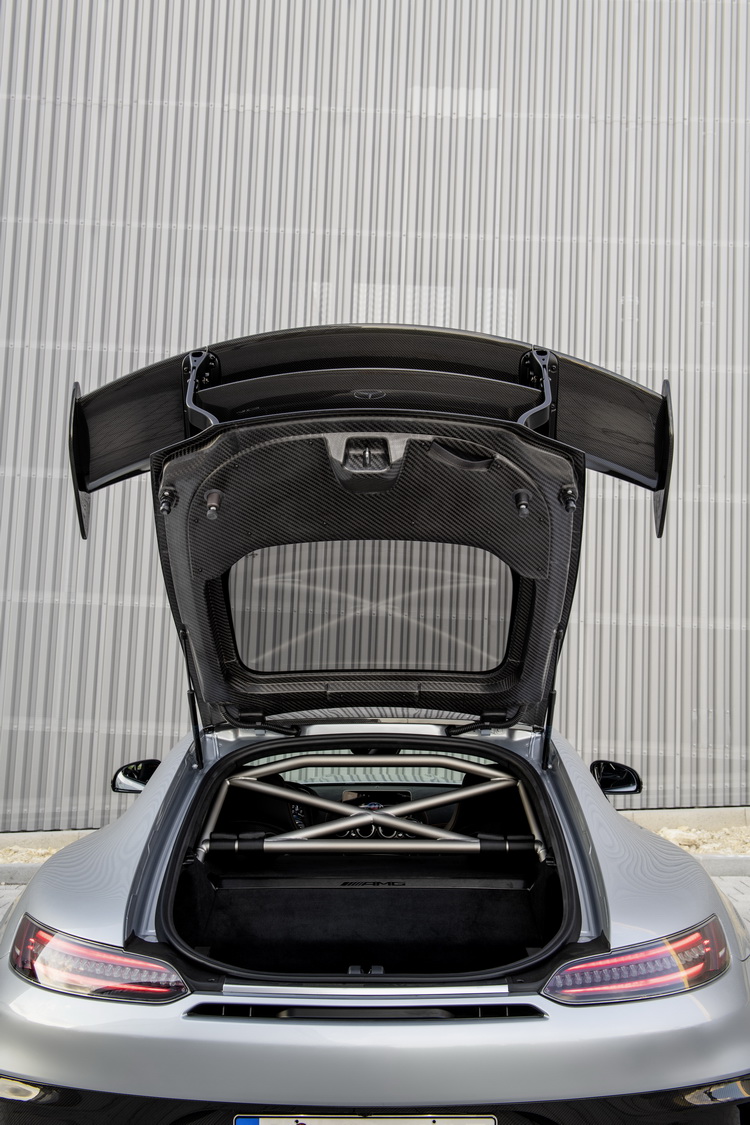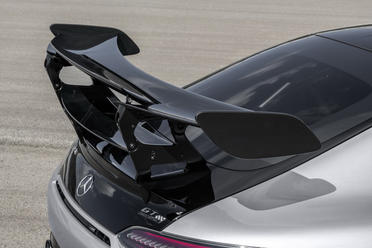 空氣動力套件也是黑系列的重要環節,項目多且毫不客氣地從AMG GT3與AMG GT4身上移植過來。水箱罩更大,前保桿上則整合了可手動調整的錢下擾流。引擎蓋與葉子板上都有大型導流口強化散熱同時確保空力效率。車尾的新後保險桿整合了雙層式分流器,上方也掛上了大型雙層式擾流尾翼。除上下兩層翼片都可手動調整外,上層翼片還可以做20度的電動調整。