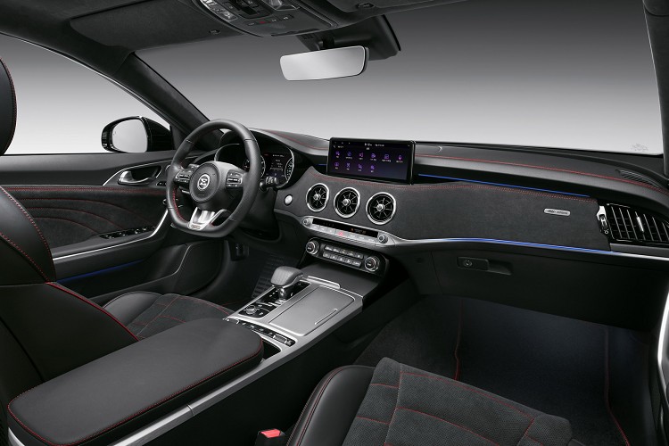 其他新奇車內配備像是有互聯功能,可遠端發動引擎,以及一些特殊國家可遠端啟動座椅加熱或者通風功能。安全配備部分,Stinger已經相當完整,改款後主動安全增加開門後方警示、更大視角的後方盲點偵測、車道跟隨輔助、高速公路駕駛輔助升級以及下車後座警報等。