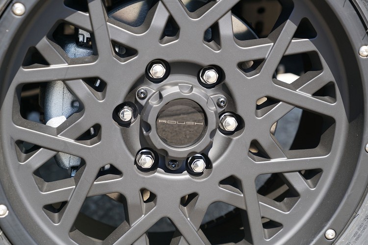 再來Roush Performance提供一組高性能雙出排氣系統,材質為不銹鋼且有打上專屬字樣。再來底盤換上一組Fox性能懸吊避震器,提升車身高度且強化整體的越野表現又可兼顧一般道路舒適性。另外,基本的輪胎對應為18吋規格的32英吋Grabber A/TX 輪胎。