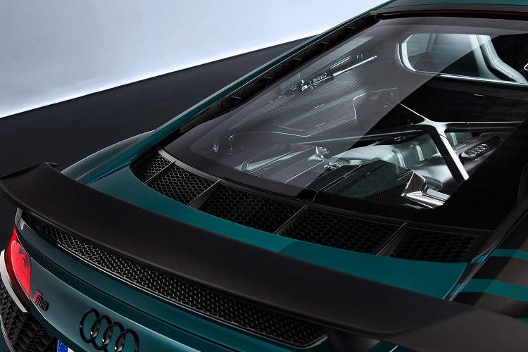 動力來自一具中置5.2升V10自然進氣引擎,可產生620匹最大馬力,它連接到七速S Tronic變速箱在傳遞於四個輪子上,四輪傳動系統有效提高輸出效率。從靜止加速到100公里/小時只需要3.1秒,最高速度則設定在331公里/小時,R8是目前少數還維持自然進氣的性能跑車。Audi R8 Green Hell Edition全球量產50台,售價約台幣800萬元。