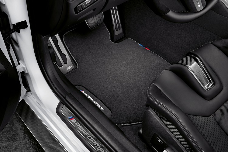 最後BMW也針對M3與M4推出19吋到21吋的鋁圈選擇,其中也包含鍛造打造的輕量化材質,顏色也有金色、黑色與鐵灰色等幾種款式。其它套件還有大型碳纖維後尾翼、碳陶瓷煞車系統、碳纖維定風翼、碳纖維側裙以及碳纖維格柵等。至於座艙內的M Performance套件當然包括一個M款性能方向盤、碳纖維排檔桿、獨特的車內地毯、門檻與各類碳纖維飾板等。