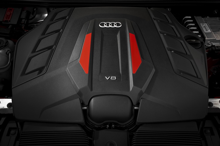 而這次要在歐洲上市的汽油版車型則是搭載「4.0 TFSI」V8燃油直噴雙渦輪汽油引擎,可輸出507hp最大馬力與78.5kgm最大扭力。兩具雙渦流渦輪增壓機以V型夾角方式配置,讓引擎在低轉速域下也有很好的油門反應。排氣系統則裝備了雙模式控制的促動器來切換不同的排氣聲浪。同樣搭配八速Tiptronic與Quattro四驅之下,0-100km/h加速成績為4.1秒,極速同樣被電子限速於250km/h。這具V8系統搭載汽缸休止系統,在低負荷的行駛狀態下可將四個汽缸暫時停止運作來降低油耗。