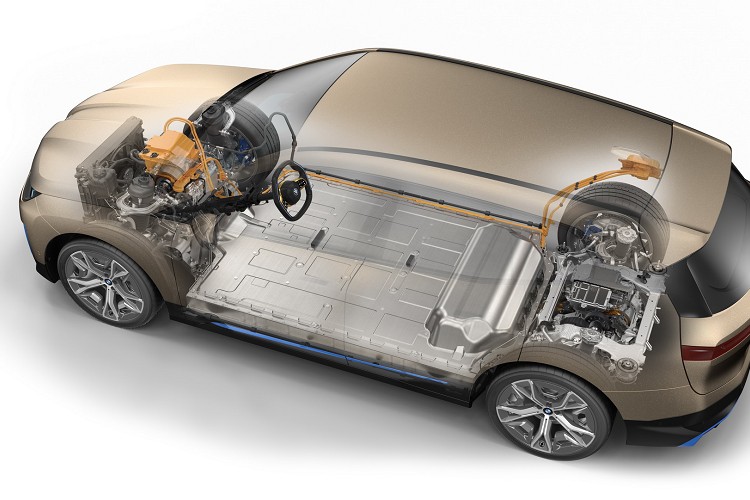 全新的動力總成採用第五代BMW eDrive技術,包括兩組電動馬達、電子系統、充電技術和高壓馬達,特別不使用稀土作為關鍵原料。動力的最大輸出超過496匹馬力,靜止加速到百公里只需要5秒內就能完成。馬達由含量超過100kWh的電池供電,根據原廠測試,滿電的狀態下可行駛約600公里。測試過程中,原廠設定目標每100公里總功率需低於21kWh。