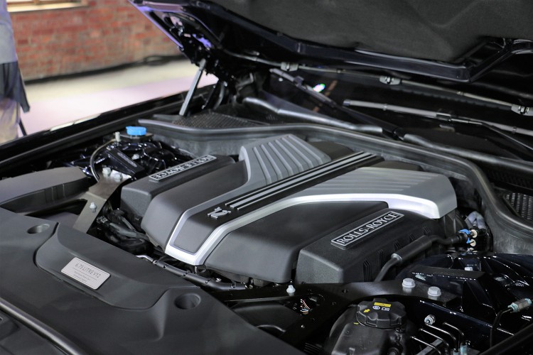與第一代Ghost標軸相比,全新Ghost標軸車身長度增加89毫米,達到5,546毫米。其車身寬度增加30毫米,達到1,978毫米。更為顯著的是全新Ghost的車身隔板及車底板均採用雙層結構,該架構設計不僅與全時四輪驅動系統、四輪轉向系統和全新設計的底盤懸架系統完美契合,兩組懸架總成均置於車輛前部,而6.75升V12引擎動力總成高達563馬力及850牛·米的最大扭矩並置於前軸後方,讓全新Ghost得以實現50比50的最完美重量分配。