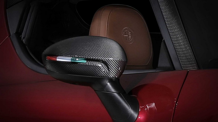 內裝部分,座椅中央採用黑色Dinamica類麂皮,其餘部分則為煙燻棕色皮革包覆。而在副手座前方、車側門檻與中央鞍座上也都能看到33 Stradale Tributo的銘牌飾板。配備上更是將不少在標準車型中列為選用的配件納入標配名單,例如Akrapovic雙模式排氣管、競技用懸吊、雙模式氙氣頭燈、碳纖維尾翼、附義大利國旗圖案的後視鏡外殼、電池充電器與車身防雨防塵套等。