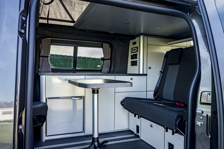 外觀造型基本維持Vivaro原樣,沒有因為露營車版本有做太大修改,唯一不同之處是有可開啟作為掀床的車頂。車內與大多數的露營車相仿,畢竟這家英國露營車專家也與多家品牌合作過。活動空間中有一組折疊床組,需要睡覺時展開,平常則能當作休憩使用。車內供應12V與240V的兩種電壓,2.2kW加熱系統、25升壓縮機冰箱、水箱洗手台和兩孔式瓦斯爐。電器的供電來源除了可插電源輸入之外,車頂有100W太陽能板可隨時蓄電。