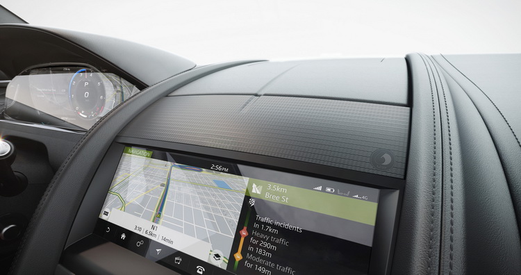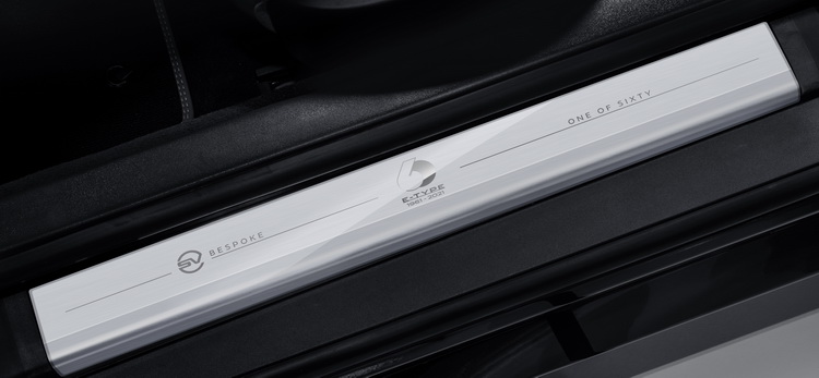 車室內也為這特仕部車選用了一些特別材質,例如「Caraway 」與「Ebony 」雙色調Windsor皮革;鋁質中控台飾板的設計靈感也是來自於E-Type的後視鏡外殼;輕量化跑車座椅頭枕上加入了E-Type六十周年紀念logo的壓印浮雕,車室門檻與地板也是紀念版的特別仕樣。