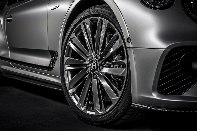外觀上,Continental GT Speed有些額外的配件來增添車輛動感氛圍,首先是消光黑色的水箱護罩與保險桿格柵,搭配上22吋鋁圈顯現霸氣。Continental GT Speed外觀特別處有前葉子板專屬Speed字樣,打開車門也能看到門檻鑲有Speed特殊飾板。進到車內,鑽石縫線皮革彰顯高貴氣質,並搭配Alcantara雙色作為混搭風,中控台大量使用碳纖維飾板來強調Continental GT Speed的不同,副駕駛前方則看得到Speed銘牌,除此之外,四座的頭枕處,也繡有Speed字體。