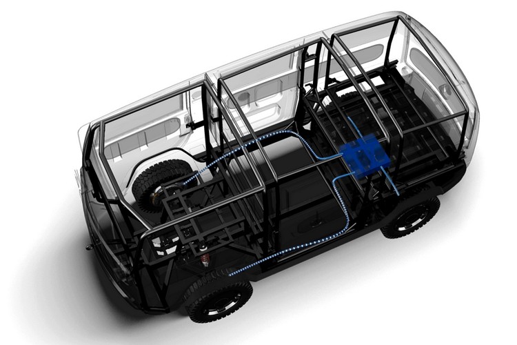 全時四輪驅動電動傳動安置在四顆輪胎內的電動馬達輸出,總功率為20匹馬力,最大峰值則有75匹,這聽起來也相當薄弱,但XBUS最大扭力則可有1,000牛頓米的輸出功率。儘管總重量低於600公斤,但可以乘載的貨物重量則可達到1,000公斤,與歐洲販售的輕型皮卡能力相匹配。