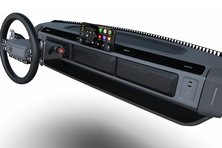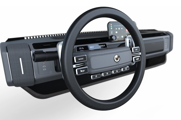 巧秒的設計使得其後方能安裝不同類型的車身模組,同時保留可愛的圓潤車身線條,看上去就像一輛小巧可愛的麵包車,但卻擁有相當強大功能性。車內的儀錶板、中控台造型也相當簡約,橫調式的中控台上安置螢幕,兩組USB插槽可擴充螢幕功能,沒有太多的按鍵,大多數的按鍵都安置在方向盤上。