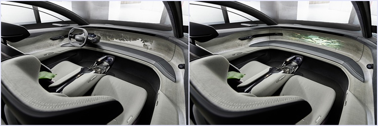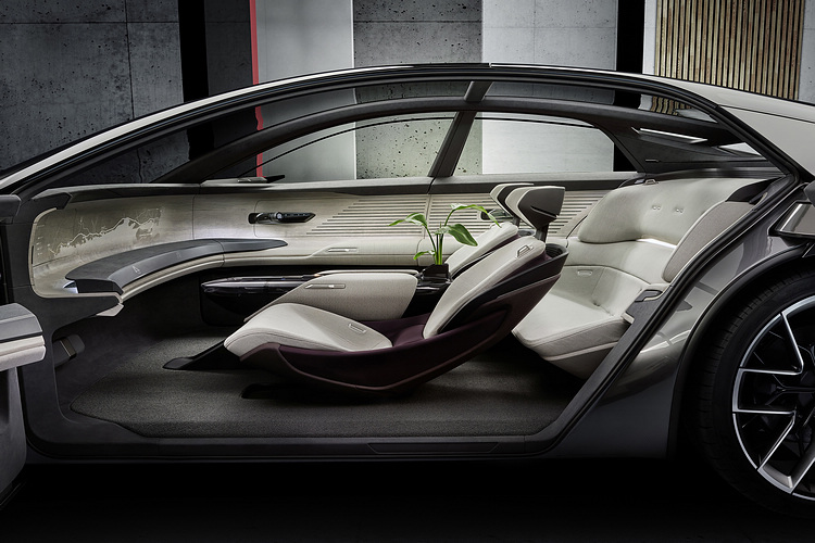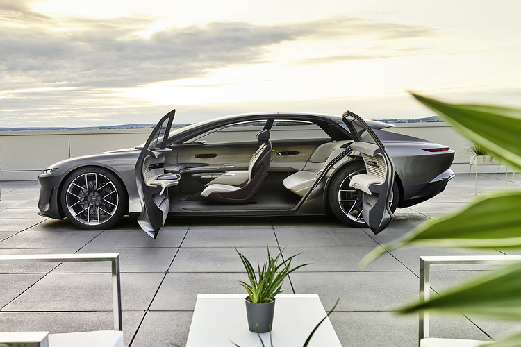Audi grandsphere概念車同樣基於Level 4自動駕駛設定下研發而成,亦即未來行駛於特定道路或交通情況下,駕駛功能可交由汽車自動駕駛;有別於傳統設計,設計團隊將私人飛機頭等艙的概念注入Audi grandsphere concept車室設計當中,車內取消B柱結構,採用對開式車門設計搭配大量開放式透明玻璃陳列,讓車室搖身變成移動式豪華Lounge,進入車內即可串連數位生活,在個人專屬空間享受豪華舒適的移動體驗。