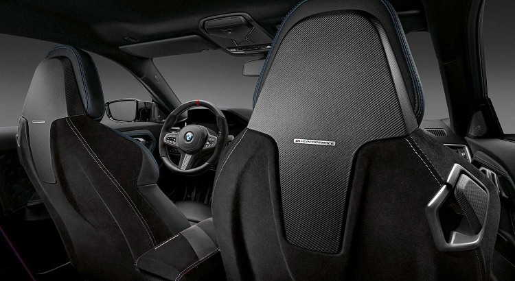 進到內部,與外觀相同大量使用碳纖維材質飾板,像是中控台、中央鞍座、賽車座椅背部等,都被更換為又輕又帥的碳纖維部件。運動氛圍內裝的重要一環還有高檔的Alcantara麂皮,M Performance套件上可看到方向盤、中央扶手、座椅背部等,都被麂皮給包覆,邊緣也用反差縫線來點綴,加重2系列的運動感。