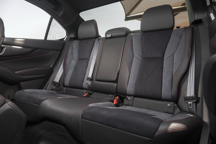 進到車內維持家族特徵,與先前所試駕的Outback有異曲同工之妙。中控台上方有一具11.6吋全採觸控螢幕,所有控制按鍵幾乎都簡化於螢幕之內,支援Apple CarPlay與Android Auto。雙前賽車化座椅表面為麂皮與真皮包覆,頭枕處有WRX字樣,如果是在WRX GT車型上面,雙前座椅會換上Recaro賽車椅,大大提升車內戰鬥氣息。後座空間保有一定的寬敞,是四門轎車該有的舒適性,行李廂在標準模式下約有353公升,後座椅背支援6/4分離傾倒,可換得更大置物容積。