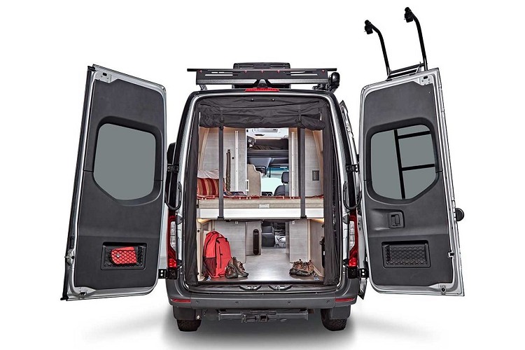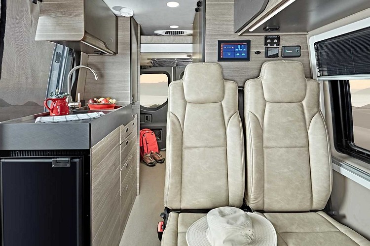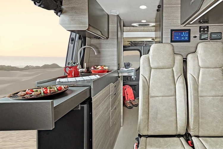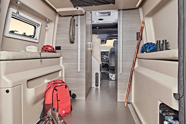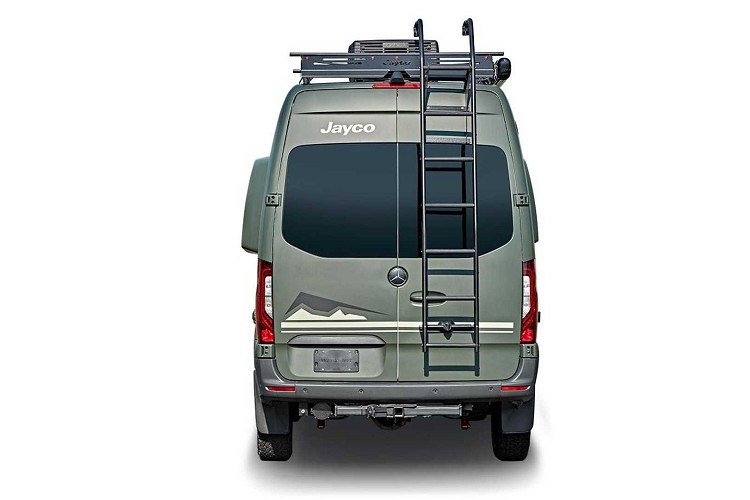 這輛名為Jayco Terrain的露營車,是以Mercedes-Benz Sprinter 2500 4x4為基礎所改造,車輛的軸距為3,657mm,充足的空間可以好好發揮。車內的配備應有盡有,Jayco設定可以在車內長時間生活,必須包括淋浴間和廁所。廚房部分帶有小冰箱和電磁爐以及簡易洗手台。其餘部分還有收納櫥櫃、收折桌子、旋轉椅子等,區分用餐、休息等需求之機能。