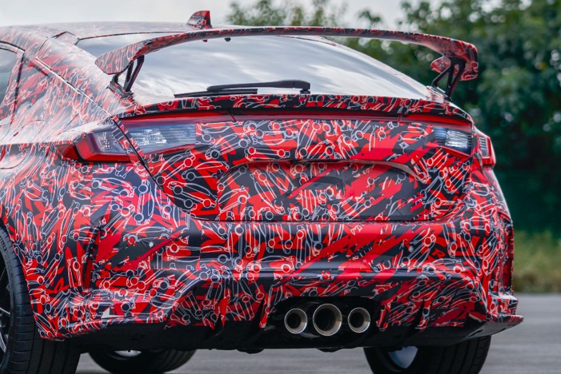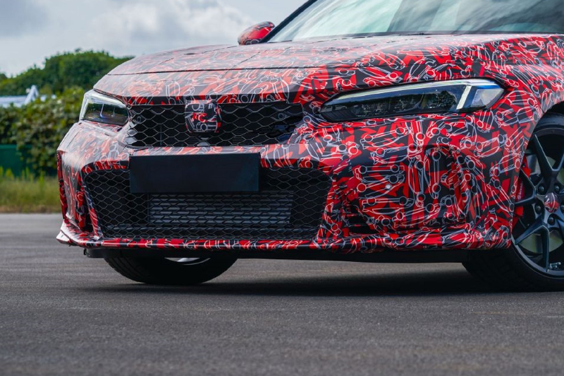 原廠刻意釋放出兩張偽裝車照片,可以發現與現行款的車身尺寸有些差異,感受到新款Civic Type R有微微放大。車頭造型更具有侵略性,但在車側的外擴式輪弧線條,卻沒有現行款來得誇張,車側線條顯得乾淨俐落。