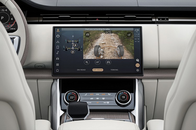 氣壓懸吊一直以來都是Range Rover的標準配備,結合自動阻尼調整,同時兼顧各種路況的需求。這一次又加入48V電子防傾桿,對於高速時的車身側傾和越野時的高地落差有相當大幫助。再來全新第五代車型將自動阻尼調整和導航訊息路面監控整合,透過鏡頭與導航數據偵測路面狀況自動調整軟硬,車內乘客和駕駛者都能帶來最佳駕乘感受。氣壓懸吊的高度增加,讓涉水高度達到900mm,絕對是同級對手中之最。