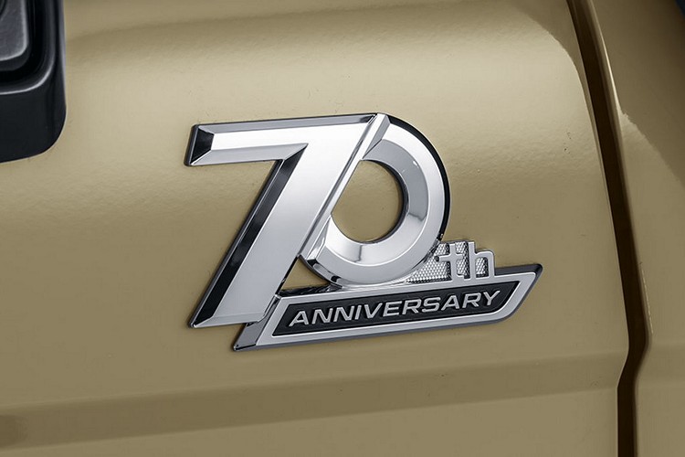 車身外觀除了有70周年的紀念徽章外,也為簡單、功能性為主的Land Cruiser進行裝飾,像是帶字母的水箱護罩、引擎進氣管、鐵保險桿、引擎蓋開孔、金屬後保桿和特殊材質尾廂防刮板等。外觀顏色有象牙白與米色兩種,標準配備16圈和全地形胎,規格為265/70 R16。