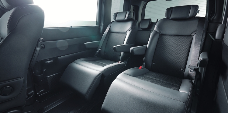三排座設定的座椅表面採用了撥水、撥油加工處理,沾上油垢污漬只要拿布輕輕擦拭即可輕鬆去除。前座中央設有USB插孔方便為手機等裝置充電;第二排座椅中央有100V規格的AC電源可為一些小家電供電;第三排提供12V DC電源與HDMI插孔,可以外接影音娛樂配備。