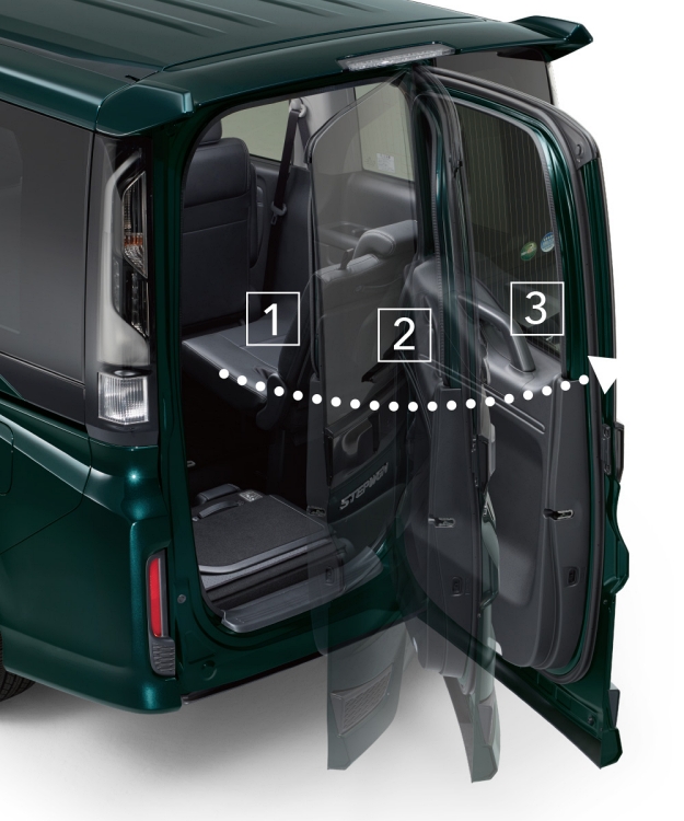 較低的車身距地高度與電動側滑後車門即使是老年人或小孩也可輕鬆上下車。第三排座椅在不用時可輕鬆折疊隱藏至行李廂下方,讓空間運用更有彈性。「Wakuwaku尾門」也是新Step WGN的一大亮點,二片式與側開的設計方便車主在停車後方空間狹小的情況下半開車門來取放物品;或是也可選擇一般上掀式尾門。