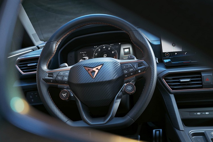 內裝部分,其最大量點是採用黑色以及藍色皮革裝飾的超級運動桶型賽車座椅,方向盤上設置Cupra模式快速按鈕,儀錶板同樣採與座椅相同皮革內飾。作為最高等級的VZ Cup,重新調整標準配備,把10.25吋數位儀表板與10吋娛樂觸控螢幕列為標準配備。