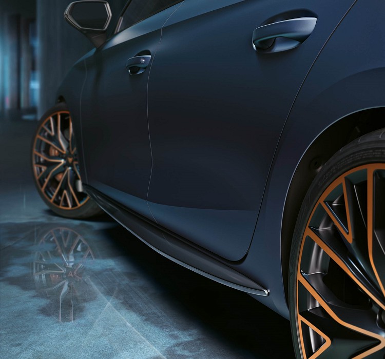 Cupra Leon VZ Cup從外觀設計上進行小地方的調整,首先鋁圈換上19吋規格的樹枝狀樣式,顏色搭配刻意用上與Cupra標誌相同的玫瑰金。其它細節包括深色鋁製側裙、碳纖維後擾流板等。除此之外,保留了Cupra Leon運動型車身套件,具有大型保桿進氣口、四出排氣管和下擾流。
