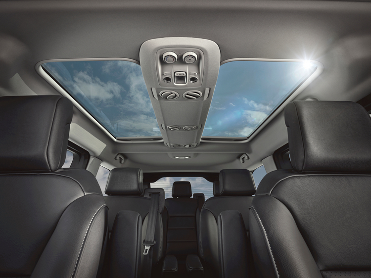 三排座椅的車室內最多可以乘座八名乘客。強調豪華舒適的「Lounge」車型標配環景玻璃天窗,由2片40cm×1m的玻璃所組成,總面積達1平方公尺,讓乘員得到明亮的採光與開放感。第二排配備有腿靠的商務艙座椅,且具有旋轉功能,可轉向後方與第三排乘客談話互動;肘枕也可以調整角度。摺疊收納桌也可以在第二排與第三排間滑移方便使用。七人座的「Livingroom」與八人座的「Shuttle」車型則可將後座前後滑移調整或是輕鬆拆卸,以應付不同的乘座與行李放置需求。