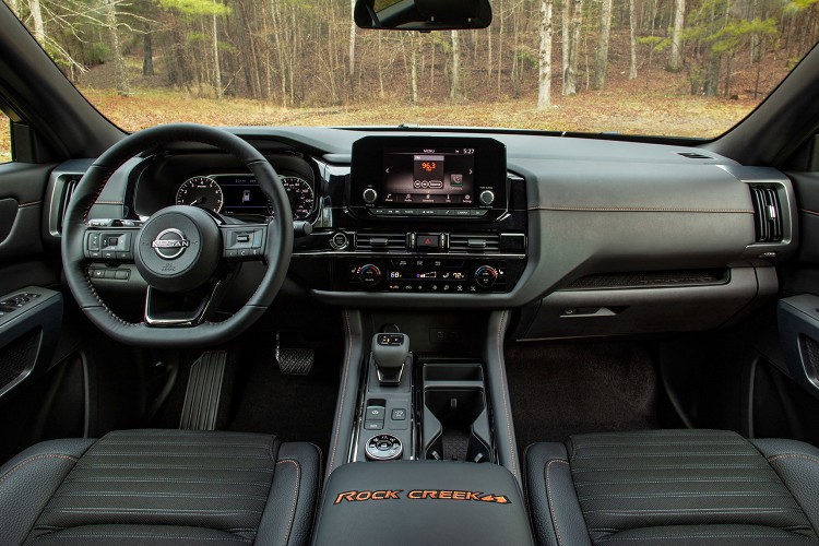 進到車內,Rock Creek特仕車看起來格外有質感,透過車縫線的改變以及Rock Creek的專屬銘牌繡字增加特殊氛圍。自於車內配備增加越野模式的環頸監視系統以及第二排兩張獨立座椅,這也意味著Rock Creek僅可乘載七位成人。這個月的紐約國際車展上Nissan Pathfinder Rock Creek將會亮相,首批交付預計在今年夏天。