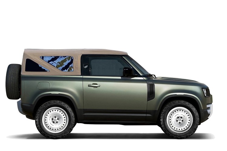 Heritage Customs於2021年底就已經想過要把Defender弄成敞篷版本,並將它命名為Valiance Defender Convertible,預計只會生產五輛,同時推出三種主題車款有Côte d'Azur、Solihull Sand 和 Kokkini Paralia。照片中看到得是Solihull Sand Valianc版本,靈感來自於英國鄉村,車身採淺綠色塗裝,帶有灰色保桿,軟質頂棚則是米色做搭配,鋁圈唯一組20吋白色鐵圈。內部則採咖啡色皮質,消費者能選擇經典造型座椅和方向盤,達到一種懷舊的吸引力。