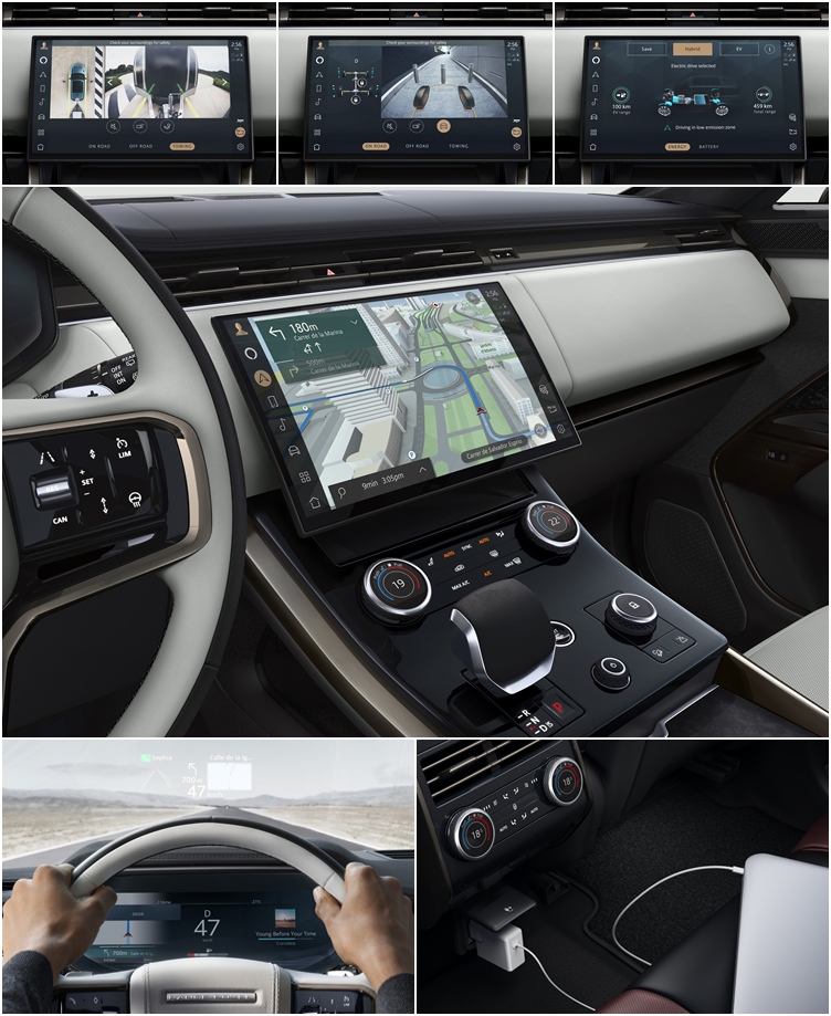 Range Rover Sport為訴求公路運動氣息的車系,新世代採用專為純電及混合動力車設計的MLA-Flex底盤,造型同樣標榜動感姿態,於車頭配置燻黑分離式格柵,擁有歷代以來最纖細扁平的LED大燈造型,營造出獨特的日間行車燈樣貌。