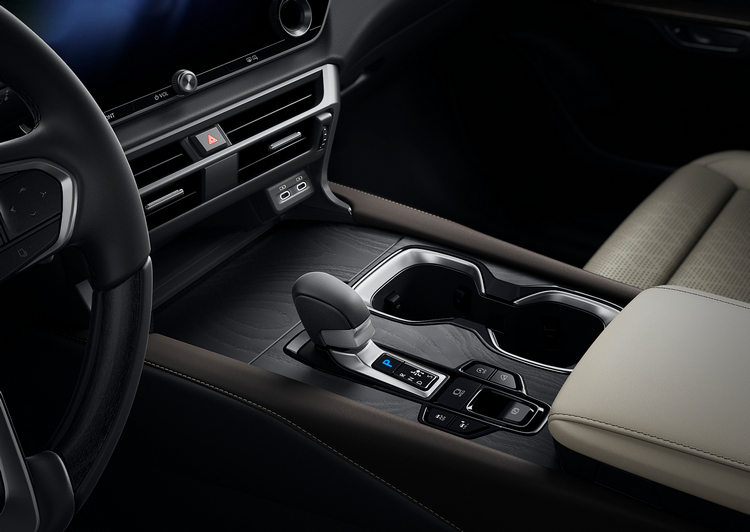 更具開放感的車室車室內裝則是基於韁繩(Tazuna)設計概念,讓方向盤功能按鈕與抬頭顯示投影幕高度統合,讓駕駛者可以不須太多的視線移動與繁雜按鍵操作下就可以操作導航、音響等各種功能。中控台上配置大型(14吋或9.8吋)觸控螢幕。車上許多功能都可以集中在此操作。按鍵的大小、形狀以及配置方式都依照使用頻率來做適當的設計讓操作起來更為直覺。