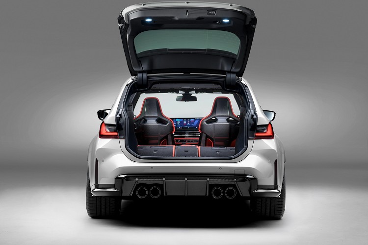至於車輛的其它部分,在外型上前半段與M3和M4相差不大,最醒目的當然就是超大型雙腎形水箱護罩以及誇張的空力套件,單看車頭絕對不會想到它是一輛旅行車。車尾的下半部配置運動型四出排氣管,底部保留Diffuser功能,可快速排出車底亂流。B柱之後的旅行車設定,大大增加車輛實用性,原廠表示,M3 Touring是有史以來最實用的M3,因為行李廂最大容積可以達到1510公升。