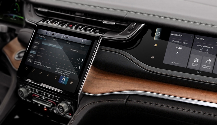 車室內,新Grand Cherokee換上新的影音資訊娛樂系統。Limited與Overland車型都標配具衛星導航的「Uconnect 5」系統,中控台上配置新世代的10.1吋螢幕,駕駛者前方也配置了10.25吋無框式數位儀錶顯示幕。「Uconnect 5」的運算速度是過去舊款的五倍,在操作衛星導航時不管是搜尋目的地或規劃路徑等都更順暢不卡頓。系統軟體也可以透郭OTA雲端無線下載方式自動更新,免跑經銷維修據點。