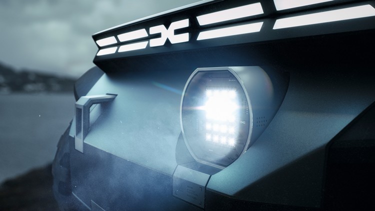 Manifesto車頭在LED頭燈照明之下,另外還設置了強力投射燈,而且只有一盞,Dacia宣稱,這就如同登山客的健行頭燈一樣:「如果一盞就夠亮了,為何要帶兩盞?」,有意思的是,這具燈組在必要時還能直接取下作為行動手電筒。