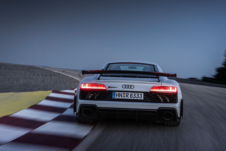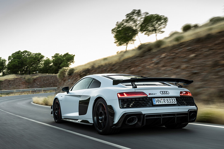 在Audi R8 GT問世長達12年之後,Audi Sport GmbH又推出第二款限量生產的超級跑車R8 Coupe V10 GT RWD,搭載可輸出620ps最大馬力的5.2升V10自然進氣引擎,而這也是Audi廠史上馬力最強大的後驅量產車,同時也會是最後一款搭載V10引擎的車型,預計將生產333台,售價22.5萬歐元。