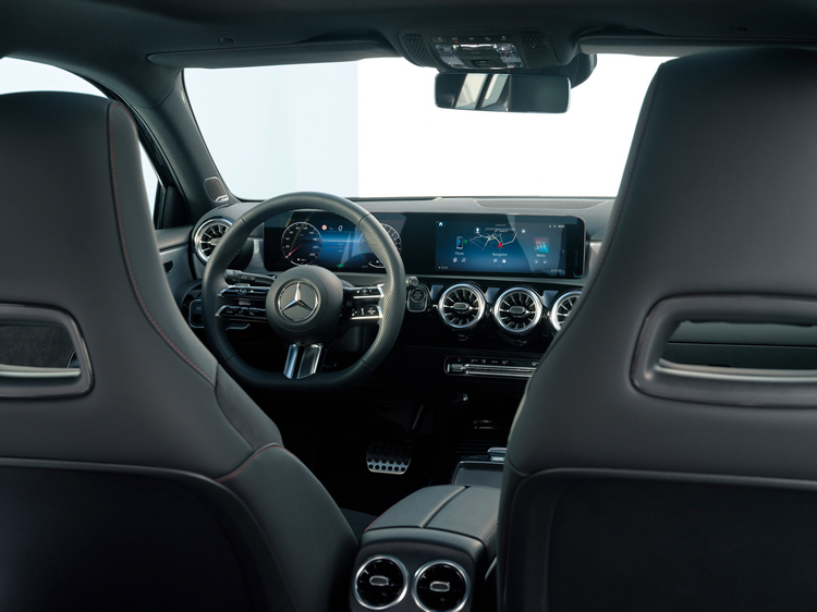 ![]() 車室內,座椅以具有立體浮凸壓印的「ARTICO」高級人造皮革包覆,「Progressive 」內裝等級車型還有米色、黑色與灰色三種內裝色可選,且在控台與車門處採用新的深色類碳纖飾板。AMG Line車型所配的「ARTICO/MICROCUT」座椅則搭配了霧面鋁合金飾板與紅色縫線。標配座椅座面中央部分採用100%可回收再生的纖維材質,「ARTICO/MICROCUT」座椅的回收再生材質使用比例為座椅表面65%、座椅內部85%。