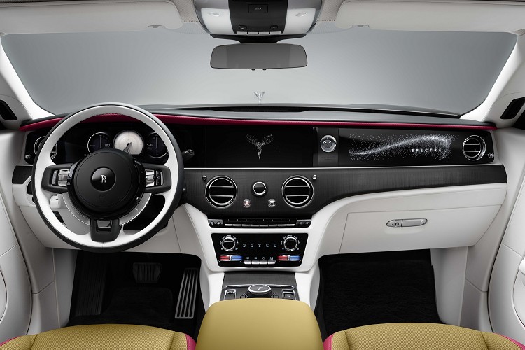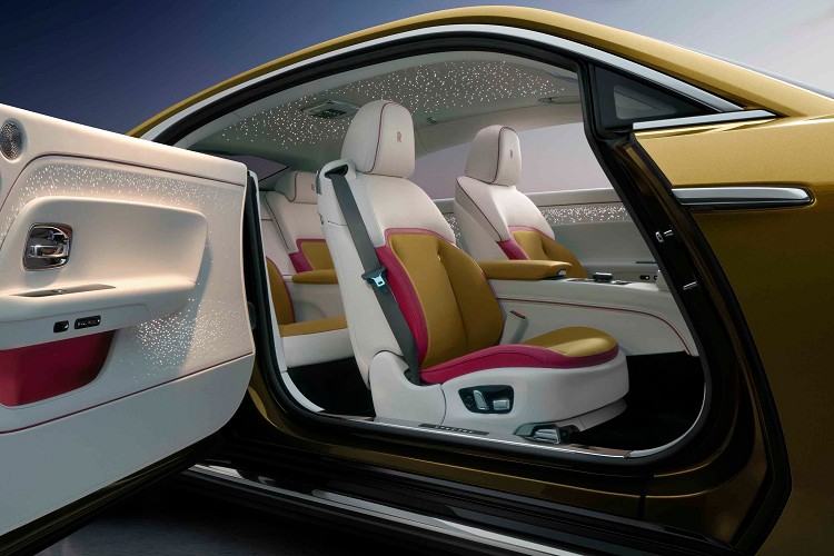 Spectre 的內飾設計靈感源於雋永神秘的夜空,也是勞斯萊斯首款配備星光車門(Starlight Doors)的量產車型。該設計以4,796 顆柔和光點營造出璀璨星空。其車門可定製 Canadel 木質鑲板作為背板,Canadel 木質鑲板的命名源於法國南部的海灣,這裡曾是亨利·萊斯爵士和設計團隊的冬季工作地點。