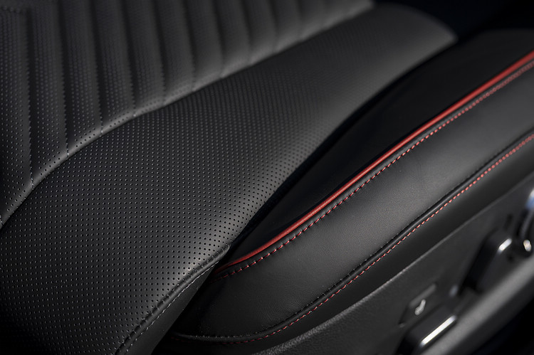 ![]() 車內則配備專屬三幅跑車式方向盤,並附有特別設計的縫線、鋁製跑車踏板,以及由真正碳纖維材質製成的飾板。