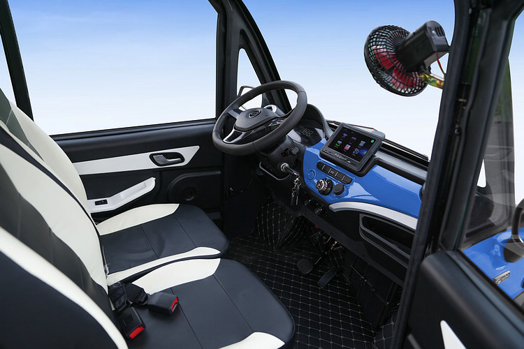 這些車看起來像是高爾夫球車的升級版,不過內部配備與設計則是大不同,除了是密閉式車廂,還可乘坐四人,並擁有一般汽車的基本配備,像是:空調系統、電動車窗、電動門鎖、四輪碟煞、後視鏡、雨刷及清潔噴嘴、遠近大燈、3點式安全帶、倒車攝影機、資訊娛樂顯示幕、USB充電座、儲物箱、行李廂和可折疊後座椅背設計。