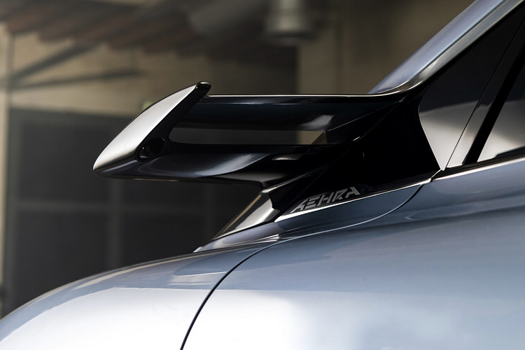 後視鏡設計則是仿照超級摩托賽車鏤空造型,並且使用包括碳纖維等超輕的永續複合材質,可以說集各種先進電動汽車科技和智慧製造技術融於一身。