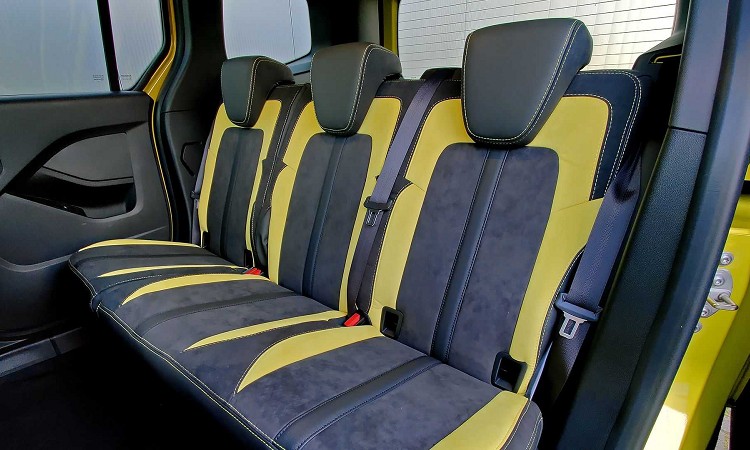 在UrbanSportster內部,Vansports特別更換車內皮革材質,使用真皮與麂皮包裹方向盤以及內部飾板,在方向盤12點鐘位置訂製一條黃色定位線。前座與後座座椅都升級成黃色和黑色Alcantara麂皮表面,與外觀車色顏色相當匹配。最後Citan門檻處安裝銀色飾板,可以確保人員上下車時不易碰傷板金、烤漆。