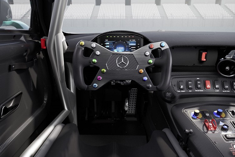 進到車內,有符合安全規範的防滾架,確保車輛在撞擊時能保護車手安全。儀錶板簡潔有力,可讀取監控車輛的各項數據;方向盤上有相當多的快捷鍵,可隨時對車輛進行調整。中央鞍座用碳纖維打造,所有的車輛控制、調整按鍵都布局在這,整體以駕駛者為導向,讓車手可以專注於賽道上。AMG尚未公布GT2的價格,但售價絕對會超過30萬美元。