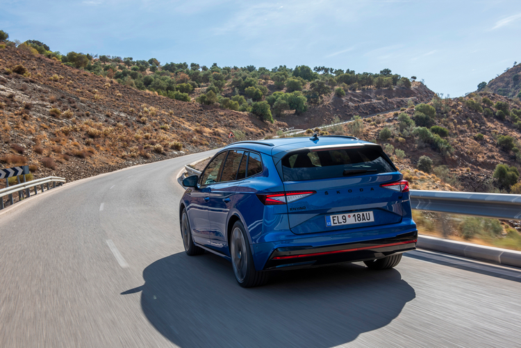 屬於SUV車型的ENYAQ RS iV與Coupe車型的ENYAQ COUPE RS iV一樣搭載雙馬達、四輪驅動的純電驅動系統。系統綜效最大功率輸出220kW、最大扭力460Nm,0-100km/h加速成績6.5秒,極速為180km/h。電池容量82kWh,最大續航里程超過500公里,支援急充功率最大達135kW,僅需36分鐘即可將電量從10%充至80%。拖曳能力則達可拖曳最大1400公斤。