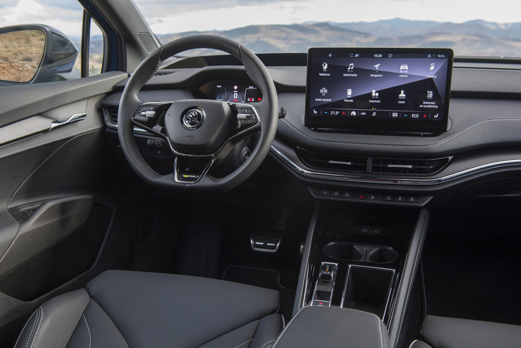 車內的影音娛樂資訊通訊系統(ME 3.2)恆時保持聯網狀態,可透過OTA雲端無線方式更新系統內的軟體,也提供了新的衛星導航圖資並可聯網播放Podcast與一些影音網站提供的多媒體內容。ACC車距調節定速巡航等功能也可以透過系統來操作。還可以透過MySKODA手機APP來操作專為電動車提供的功能如遠端充電控制、上車前預開空調冷/暖氣等。所配置的中控台螢幕更是品牌目前最大的13吋;顯示基本與重要行車資訊的數位儀錶則為5.3吋。抬頭資訊投影顯示幕則為選配。