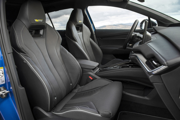 車室內裝以黑色為主調搭配碳纖+拋光鋁合金飾板,配合RS跑車座椅、多功能方向盤(具握觸感應偵測)營造運動化氛圍。舒適便利性配備則包括三區恆溫空調、手機無線充電板等。環景天窗、後座遙控釋放機構等則為選配。
