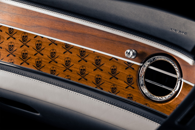車內環艙飾板上側採用開孔高級山紋胡桃木,下側則是高光澤高級山紋胡桃木,上面的骷髏頭圖案是以雷射雕刻而成。後座車門則嵌上有立體鑽石格紋的胡桃木飾板。中控台上的翻轉式介面則提供類比式撥盤、數位顯示幕與核桃木面板三種選擇。