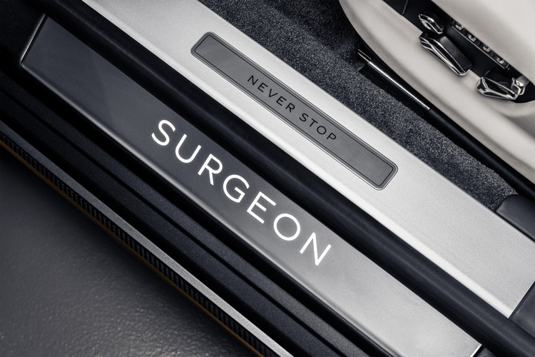 進入車室內,首先吸引到目光的就是在木質飾板、中央鞍座與頭枕上的骷髏頭圖案,外側車門檻飾板是「SURGEN」字樣,內側則是「NEVER STOP」字樣。LED迎賓燈則是投射骷髏頭與特別的logo於地面。